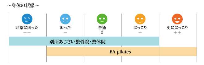 今後はご利用いただく方々の更なる根本的な解決を目指して現在の治療法にプラスして、医学的にも効果が証明されているリフォーマーというマシンを使用したピラティスによる運動療法を導入します。お一人ひとりのお悩みに対応したプライベートレッスンを「BA pilatesスタジオ」として院内で展開します。今までの治療とピラティスによる運動療法を掛け合わせたWアプローチで根本改善を目指します。